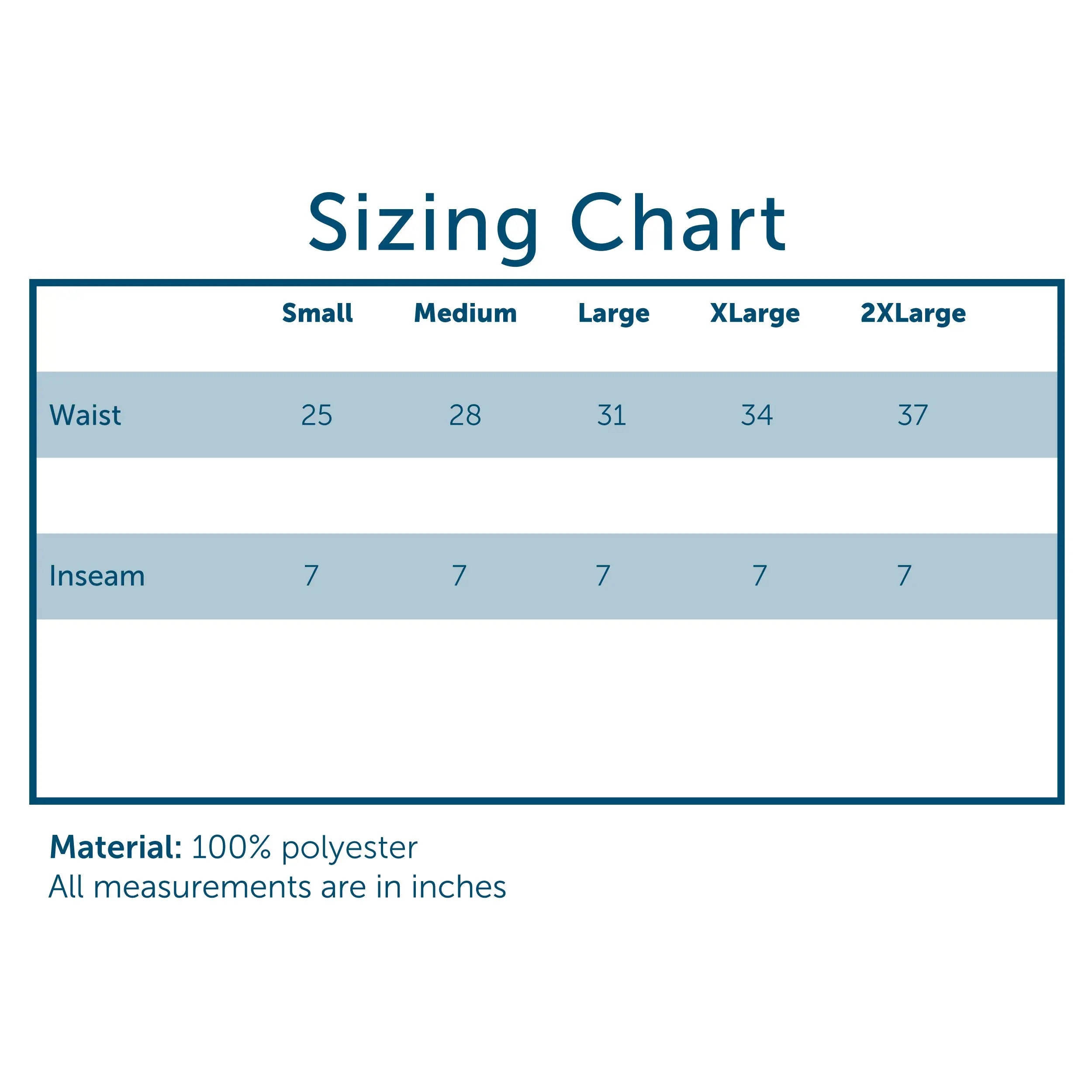 These shorts are made of 100% polyester performance mesh and have an elastic waistband.