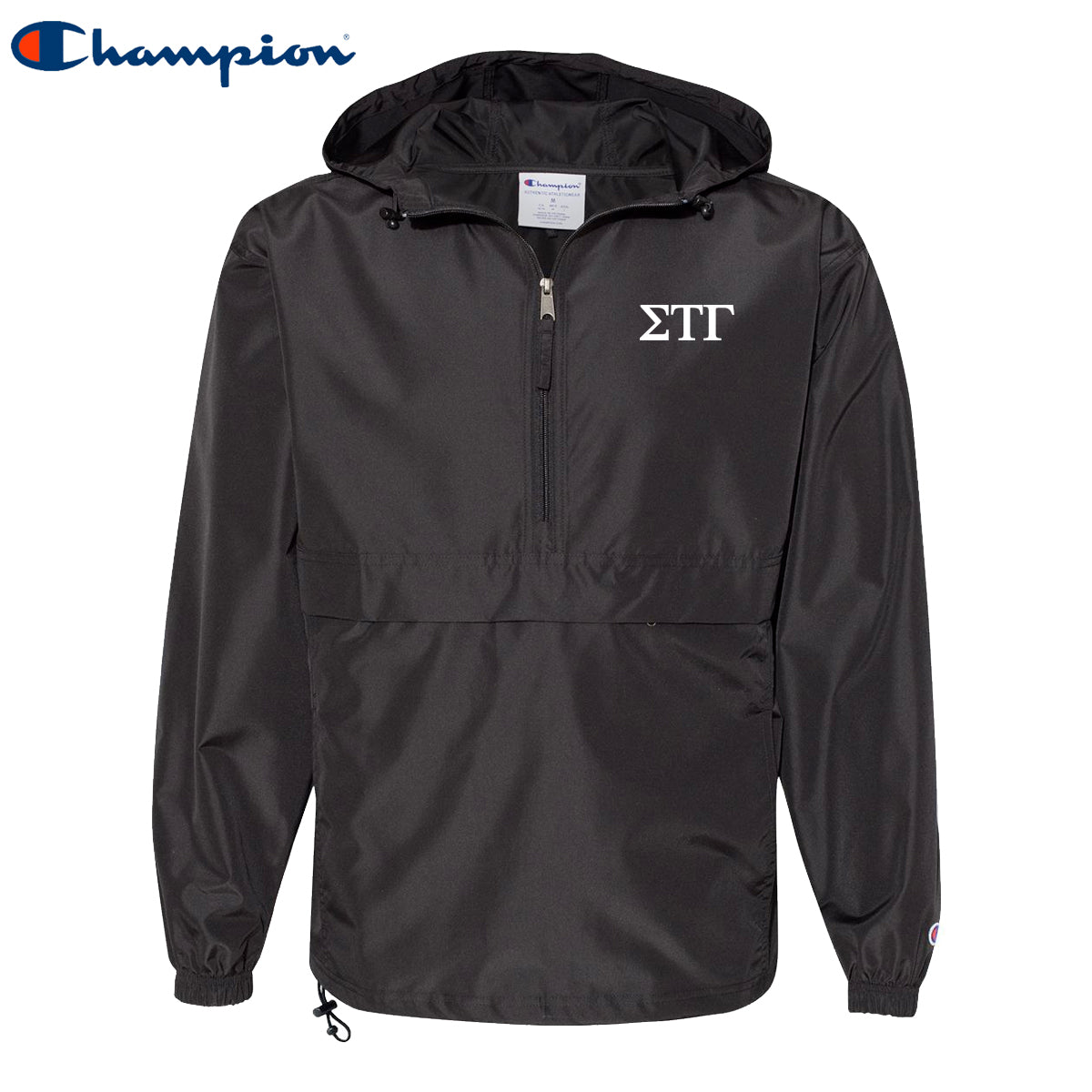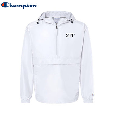This Sig Tau Champion windbreaker is sleek and durable to last you through your college days! Whether you're caught in the rain on campus or celebrating a windy win for your school this wind and water-resistant jacket is all you'll need. This windbreaker comes with subtle Sigma Tau Gamma Greek letters on the left chest with your choice of a black or white jacket.