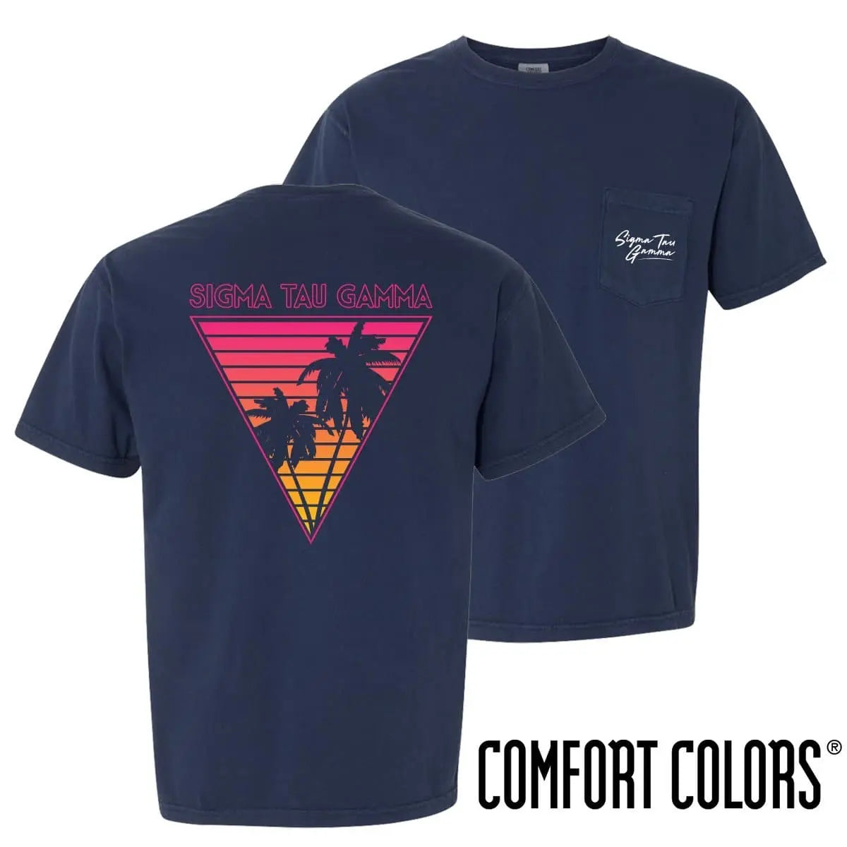 Soak up the 80s vibes in this Sigma Tau Gamma tee. A perfect pick for any activity, this Sig Tau Comfort Colors tee is a relaxed fit with a front pocket. 100% Pre-shrunk cotton ensures it'll be a favorite for summers to come.